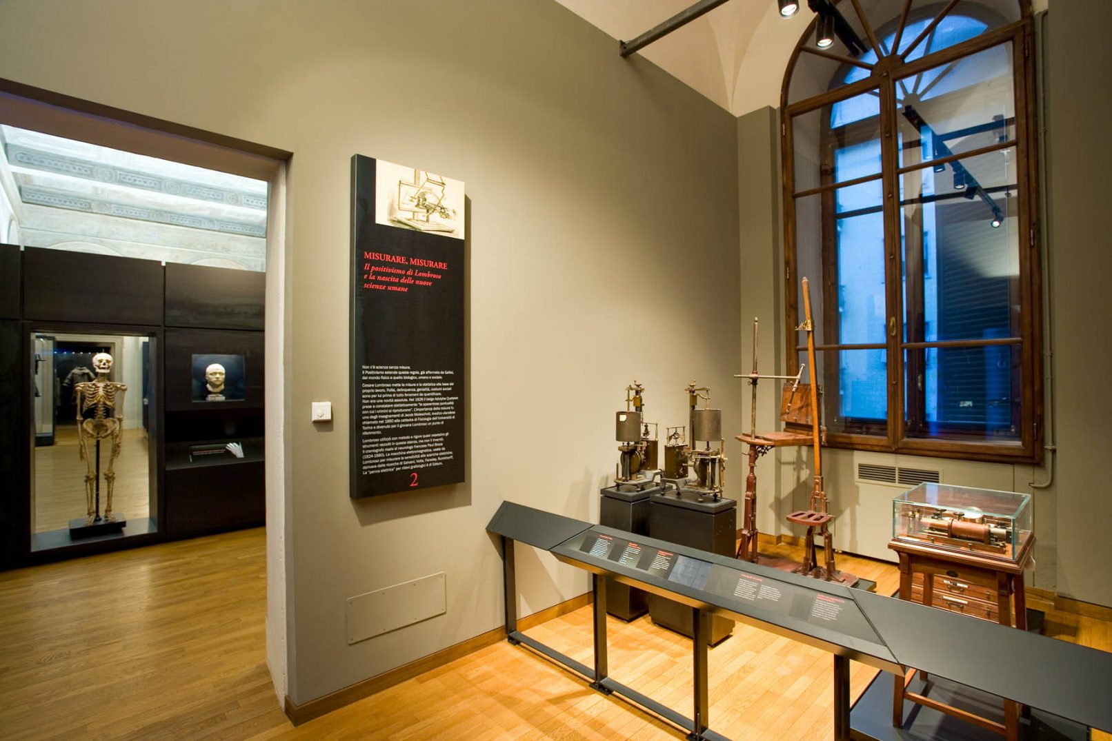 Si alternano così spazi in cui vengono suggeriti ambienti dell’epoca, in cui sono ricollocate le vetrine originali del vecchio Museo e lo studio originale del Lombroso e spazi in cui sono inserite vetrine e dispositivi su disegno che accolgono i numerosi oggetti della collezione.