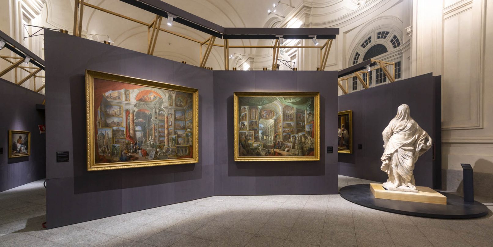 – la costruzione di “fughe prospettiche” attraverso le pannellature temporanee, al fine di restituire al visitatore le eccezionali dimensioni della Galleria Juvarriana.