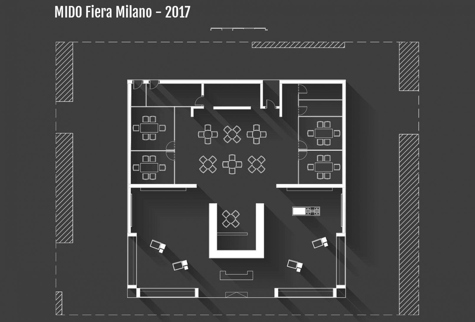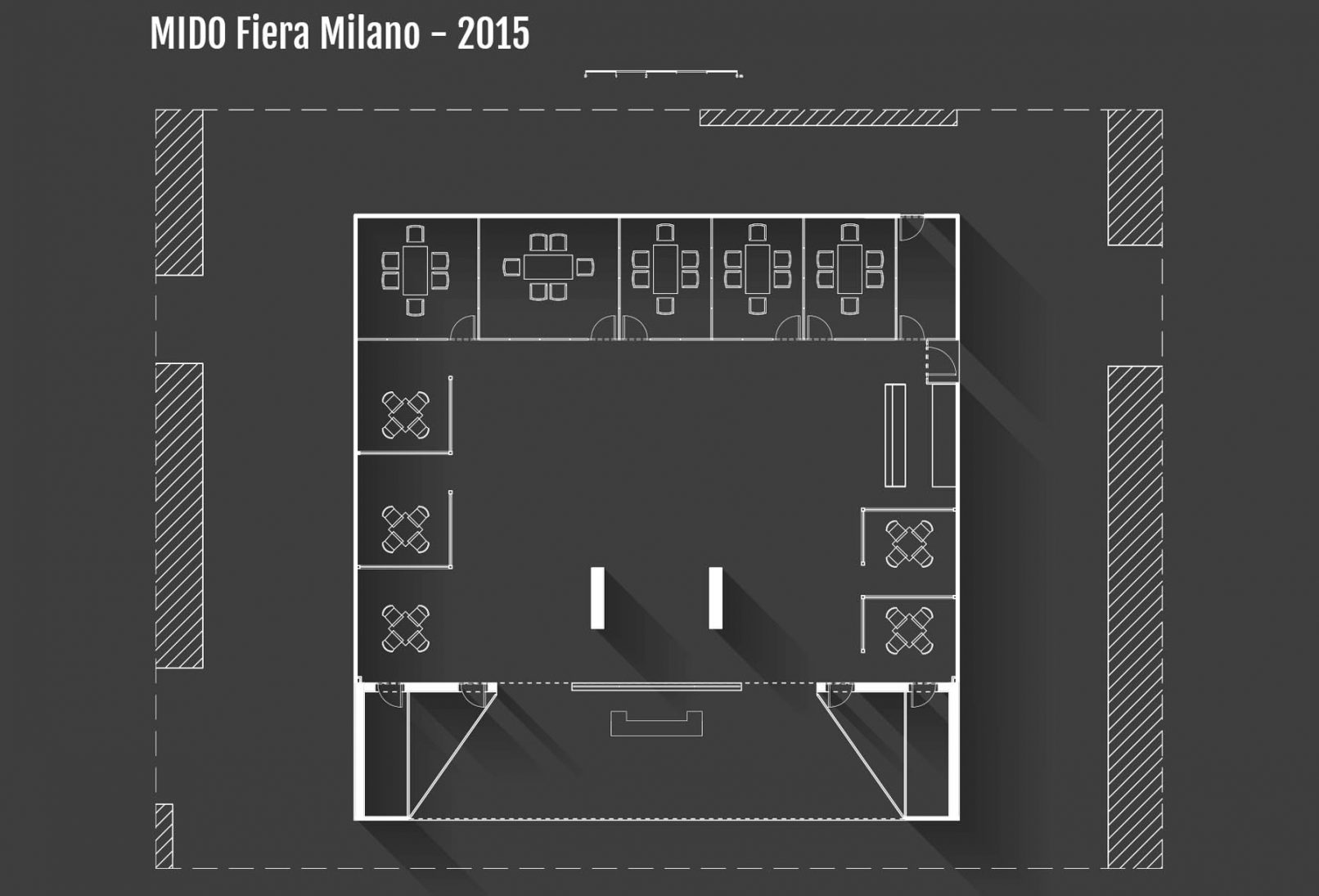 Lo Studio Dedalo progetta dal 2006 lo stand Luxottica presso il MIDO, evento internazionale che si svolge annualmente presso la Fiera di Milano.